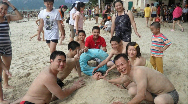 捕完魚後大(dà)家都忍不住投入了(le)大(dà)海的懷抱,争先恐後的“跳海”了(le),遊着泳,打着水(shuǐ)丈,挖個沙坑,随便找個同事(shì)放(fàng)進去,然後埋起來(lái),露出一個腦(nǎo)袋……一片歡樂的場景,使我們一下(xià)子忘卻了(le)所有煩惱,回到(dào)了(le)童年,找回了(le)那份很(hěn)難得的童真……。
