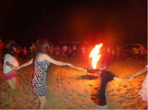 的那種大(dà)草原的那種舞蹈,在沙灘上(shàng)别有一番風(fēng)味。吃飽喝足後,我漫步于浪花(huā)邊緣,聽着一陣又一陣的浪花(huā)拍(pāi)打着沙灘,周圍燃起星星漁火,沙灘上(shàng)煙(yān)花(huā)此起彼伏,此情此景,真想對(duì)自(zì)己喜歡的人大(dà)聲的說幾句肺腑之言……