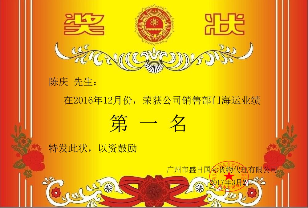 2016年12月份海運銷售部優秀員工(gōng)