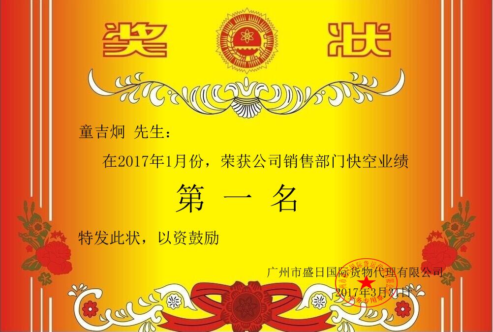 2017年1月份快(kuài)空(kōng)銷售部優秀員工(gōng)